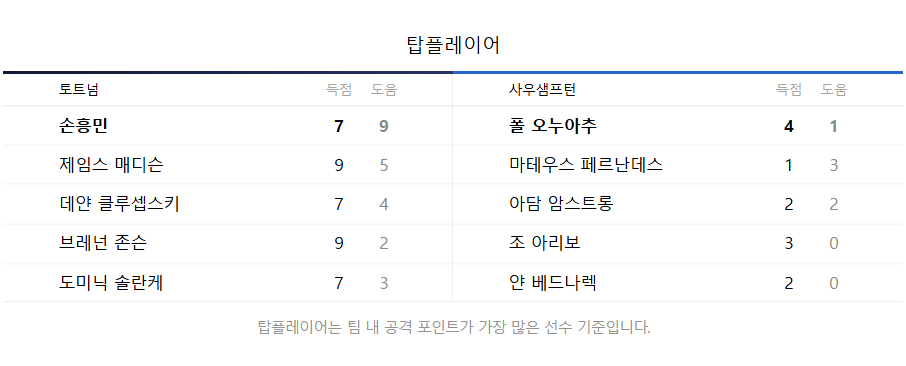 💙 토트넘 TOP5 공격 포인트