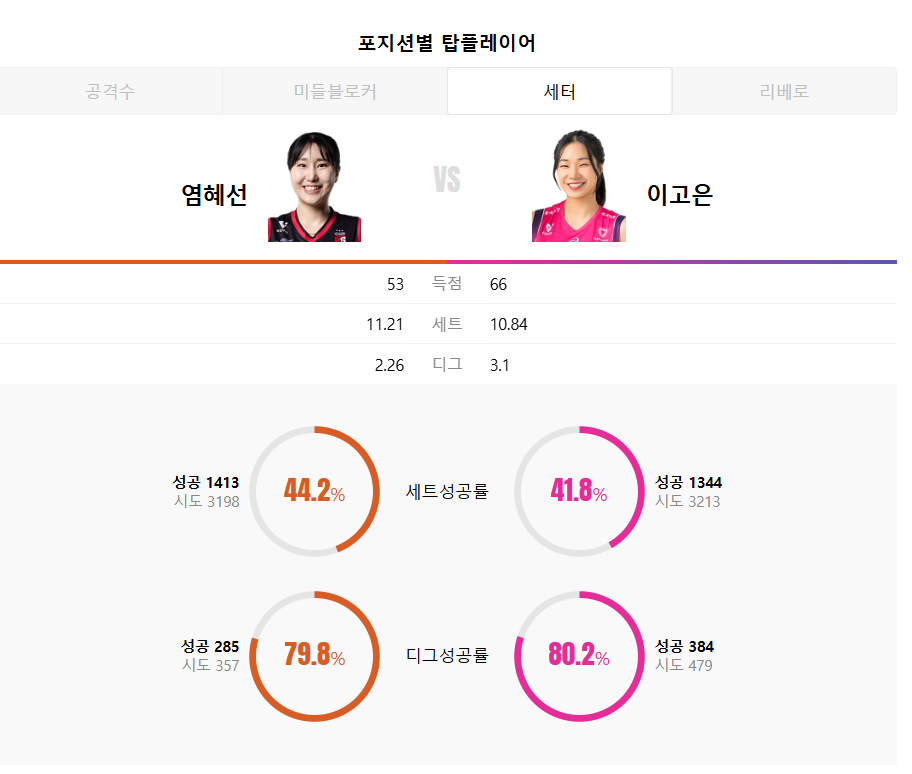 - 세터: 염혜선(정관장) vs 이고은(흥국생명)
