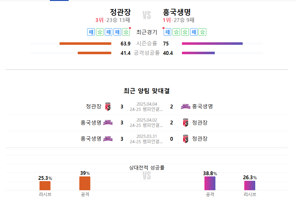 - 챔피언결정전 전적: 흥국생명 2승, 정관장 1승