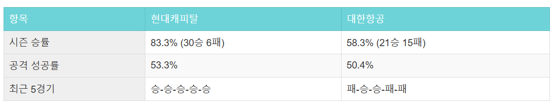 반면 대한항공의 한선수는 경험 많은 세터이지만, 체력 부담이 있는 나이이고 패턴이 비교적 예측 가능해지면서 현대캐피탈에게 읽히는 경우가 늘고 있습니다.